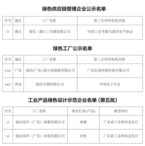 近日,工業(yè)和信息化部公示了2023年度綠色制造名單,海信空調(diào)有限公司、海信(廣東)廚衛(wèi)系統(tǒng)股份有限公司入選國家綠色工廠;海信(浙江)空調(diào)有限公司入選國家綠色供應(yīng)鏈管理企業(yè)。在工信部第五批工業(yè)產(chǎn)品綠色設(shè)計示范企業(yè)名單中,海信容聲(廣東)冰箱有限公司、海信容聲(廣東)冷柜有限公司同樣榜上有名。至此,海信家電累計已有國家級綠色工廠7個、國家綠色供應(yīng)鏈2個、國家級工業(yè)產(chǎn)品綠色設(shè)計示范企業(yè)5個、省級綠色工廠4個,數(shù)量及覆蓋率處于行業(yè)領(lǐng)先地位。