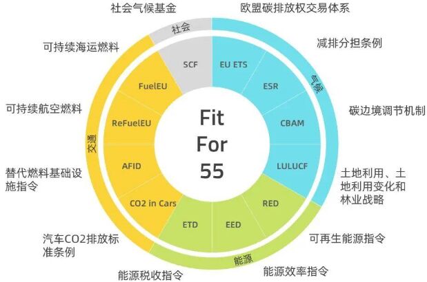 ▲碳關(guān)稅和歐盟碳排放總量控制與交易體系,均是歐盟“Fit for 55”減排計(jì)劃的核心部分之一,其目標(biāo)是使得歐盟到2030年溫室氣體排放量較1990年減少55%,到2050年實(shí)現(xiàn)碳中和