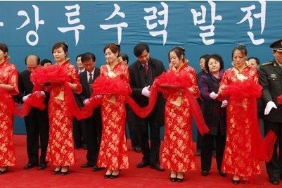陳偉根與朝鮮電力工業(yè)省金萬壽副相等人剪彩