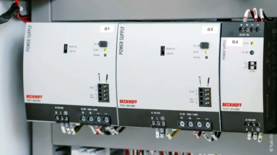 倍福 PS 系列 DIN 導(dǎo)軌安裝式電源確保為安裝有 EtherCAT 插拔式模塊的信號分配板供電