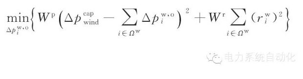 其中第1個目標確保斷面運行安全, 第2個目標確保風(fēng)電場公平調(diào)度; 約束條件主要包括:風(fēng)電場有功校正量對斷面有功變化的靈敏度約束、避免反調(diào)的風(fēng)電有功調(diào)節(jié)方向約束、風(fēng)電場有功出力約束、風(fēng)電送出斷面可行約束等。 4、第二階段決策—最小棄風(fēng)控制: 基于充分利用電網(wǎng)的風(fēng)電接納空間, 恢復(fù)被限風(fēng)電: