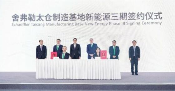 在新能源二期工廠啟用儀式上,舍弗勒與太倉高新區(qū)簽訂新能源三期項(xiàng)目投資協(xié)議,繼續(xù)加碼新能源業(yè)務(wù),擴(kuò)大在華投資。新能源三期項(xiàng)目占地約70,000平方米,投資額達(dá)2億歐元(約合15億人民幣),聚焦新能源電驅(qū)動領(lǐng)域,涵蓋如輪轂電機(jī)、電橋減速箱、混動變速箱等新能源汽車產(chǎn)品的生產(chǎn)制造,以及物流倉儲等配套設(shè)施。