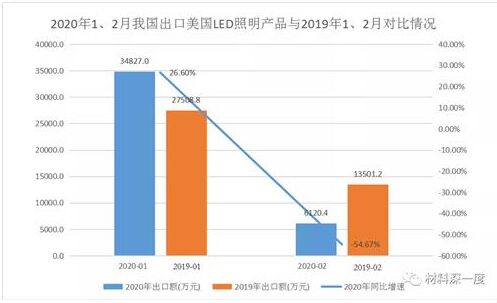 2020年前兩月我國(guó)共出口LED照明產(chǎn)品到(美國(guó))共計(jì)4.09億美元,占整體出口額25.4%。今天給大家介紹一下2020年1-2月LED照明產(chǎn)品的出口(美國(guó))情況。 一、對(duì)美國(guó)LED照明出口額略有下滑 據(jù)CSA Research對(duì)海關(guān)數(shù)據(jù)統(tǒng)計(jì)分析顯示, 2020年前兩月我國(guó)出口美國(guó)的LED照明產(chǎn)品共計(jì)4.09億美元,較2019年下跌了0.15%。雖然整體出口額和頭年變化不大,但每個(gè)月波動(dòng)明顯,1月份上漲26.60%,但二月份受新冠肺炎疫情影響,同比下跌了54.67%。