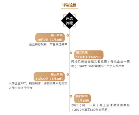 2020年,新冠疫情的爆發(fā)以及隨后的全球蔓延,讓本就風(fēng)云變化的國際貿(mào)易環(huán)境更加嚴(yán)峻,這也導(dǎo)致中國產(chǎn)品出口受阻,內(nèi)部競爭環(huán)境異常激烈。 在LED領(lǐng)域,照明行業(yè)逐漸步入成熟期迎來“天花板”,各家企業(yè)面臨發(fā)展瓶頸;顯示行業(yè)出口下滑,造成國內(nèi)渠道競爭加劇。 但與此同時(shí),也有部分照明企業(yè)通過技術(shù)與產(chǎn)品創(chuàng)新,不斷降低成本,積極開拓細(xì)分市場,取得明顯的發(fā)展;而Mini技術(shù)不斷成熟,市場化進(jìn)程加速,Micro技術(shù)難題持續(xù)得以突破,帶給行業(yè)巨大的新機(jī)會(huì)。 行業(yè)變遷之際,今年的第十一屆高工金球獎(jiǎng)更具有特殊性。 2020年10月9日,高工LED正式啟動(dòng)“2020高工金球獎(jiǎng)”評選活動(dòng)。 旨在表彰在這一年中,對LED行業(yè)具有突出貢獻(xiàn)的技術(shù)與產(chǎn)品,激勵(lì)更多企業(yè)投入到創(chuàng)新中,為行業(yè)輸送更多創(chuàng)新性技術(shù)與產(chǎn)品。 高工金球獎(jiǎng)見證了行業(yè)發(fā)展的十一年,該評選活動(dòng)已成功舉辦過十屆,并且得到整個(gè)LED行業(yè)的高度關(guān)注和業(yè)內(nèi)細(xì)分領(lǐng)域企業(yè)的積極參與,擁有“LED界奧斯卡”之稱。 在評選過程中,高工LED將從技術(shù)、產(chǎn)品到企業(yè)等多角度,集合業(yè)內(nèi)權(quán)威人士意見及高工產(chǎn)業(yè)研究院調(diào)研數(shù)據(jù),公開、公正地推選出好技術(shù)、好產(chǎn)品,樹立榜樣企業(yè)和優(yōu)秀成功的領(lǐng)導(dǎo)者形象,增進(jìn)中國LED中上游產(chǎn)業(yè)鏈之間的相互了解。 評價(jià)結(jié)果具有重要的導(dǎo)向作用和榜樣作用,為下一年度行業(yè)和企業(yè)的發(fā)展決策提供支持,同時(shí)為資本選擇標(biāo)的提供參考。 從高工金球獎(jiǎng)組委會(huì)獲悉,本屆金球獎(jiǎng)獎(jiǎng)項(xiàng)設(shè)置分為年度創(chuàng)新技術(shù)與產(chǎn)品獎(jiǎng)?lì)惻c高工金球獎(jiǎng)-2020十大品牌獎(jiǎng)兩大類。 其中年度創(chuàng)新技術(shù)與產(chǎn)品獎(jiǎng)?lì)惙譃椤罢彰黝悺迸c“顯示類”24個(gè)品類,獎(jiǎng)項(xiàng)涵蓋LED中上游產(chǎn)業(yè)鏈。 而高工金球獎(jiǎng)-2020十大品牌獎(jiǎng),則將由高工LED研究所根據(jù)市場規(guī)模、品牌口碑等公布高工LED 50強(qiáng)品牌企業(yè),公示在金球獎(jiǎng)評選頁面上投票選前20名作為入圍名單,由高工綜合各方數(shù)據(jù)評出前十大品牌。 目前,金球獎(jiǎng)報(bào)名正在火熱進(jìn)行中,據(jù)高工LED金球獎(jiǎng)組委會(huì)統(tǒng)計(jì),目前已有幾十家企業(yè)報(bào)名參與評選,其中包含奧拓電子、聯(lián)建光電等LED企業(yè)。 值得注意的是,今年的金球獎(jiǎng)評選將分為四個(gè)階段。 同時(shí),本次金球獎(jiǎng)在評選環(huán)節(jié)做了多項(xiàng)重大改革: 1、以企業(yè)名義投票;每家產(chǎn)業(yè)鏈企業(yè)有且僅有一票(每個(gè)獎(jiǎng)項(xiàng)); 2、高工金球獎(jiǎng)組委會(huì)將對符合票權(quán)的企業(yè)發(fā)放投票碼; 3、投票過程實(shí)時(shí)公布投票碼投票實(shí)況;