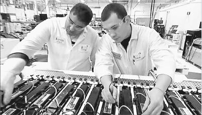 A123系統(tǒng)公司員工在做鋰離子電池質(zhì)檢