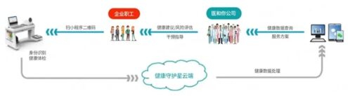 健康驛站-健康守護星的體驗流程為:員工自助掃描二維碼,根據(jù)手機端微信小程序和平板電腦的指引開始體檢;體檢結(jié)束后,云端對用戶的健康數(shù)據(jù)進行處理,從而對異常數(shù)據(jù)提出預(yù)警;醫(yī)和你通過接口調(diào)取用戶的健康數(shù)據(jù)進行分析評估和干預(yù)服務(wù),根據(jù)給企業(yè)提供的服務(wù)方案提供服務(wù)。